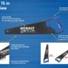 The Kobalt 15in Hand Saw has a long-lasting, low-friction coating that helps reduce drag, and induction-hardened teeth that stay sharp for a long time. This saw is great for framers, woodworkers and general contractors.