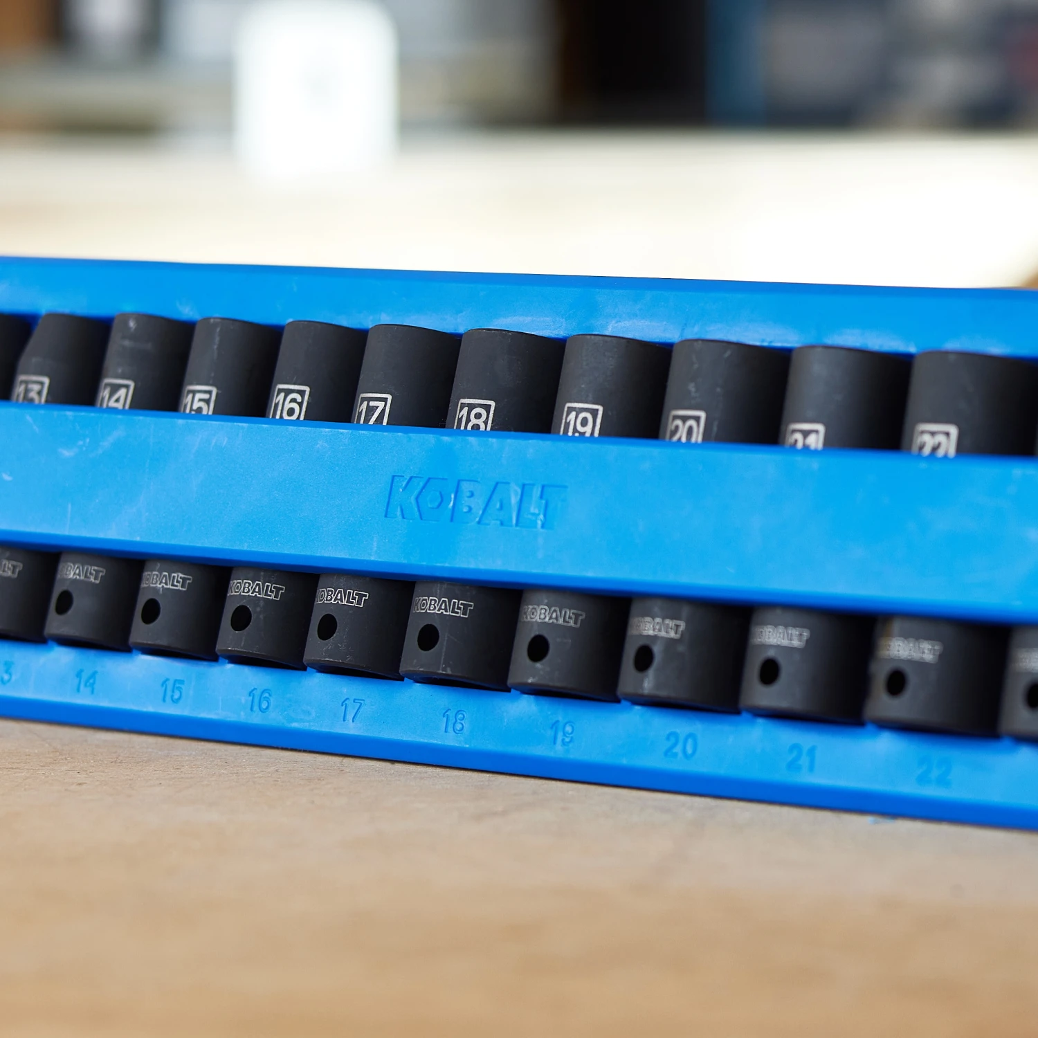 Kobalt’s 1/2-inch drive, 16-piece metric impact socket set includes only deep impact sockets. Sockets are constructed from chrome vanadium steel and are heat treated to withstand everyday use in your home garage or professional shop. This set is intended for use with an impact tool to provide maximum installation of heavy duty fasteners. Each components has a pin hole to safely attach to your impact tool and 6-point sockets have a chamfered opening to help guide socket on to the fastener. Size callouts are laser-etched on each socket for easy identification in or out of the blow-molded carrying case.