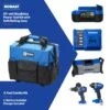 Also included are: 4.0Ah battery, quick charger, and soft-sided rolling tool bag