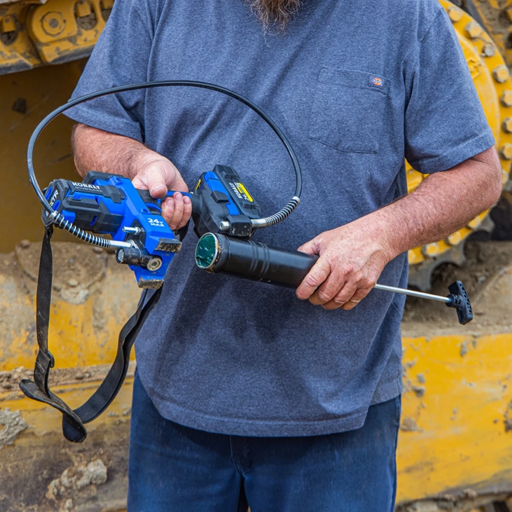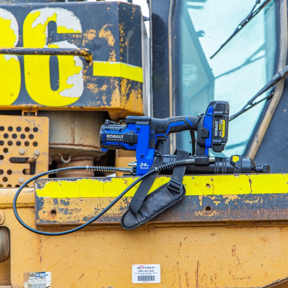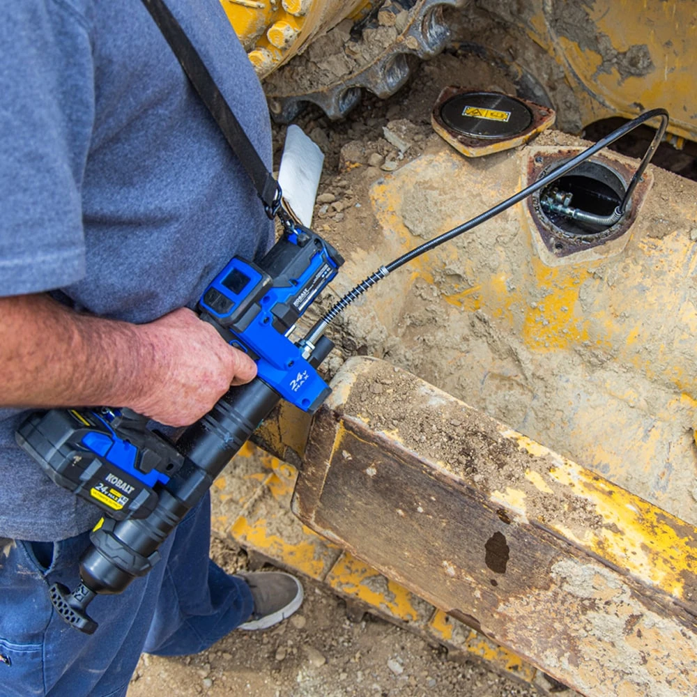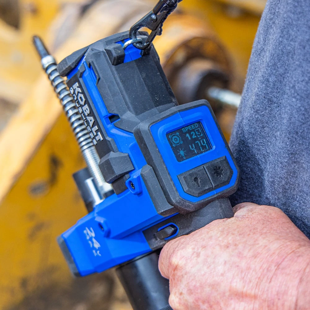 Multi-function LCD display shows grease output for precise control and alerts the operator of blocked fittings