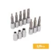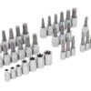 Kobalt’s compact, mixed-drive set contains popular 1/4-in and 3/8-in drive bit driver sockets and external star sockets to help complete many small jobs at home and at work
