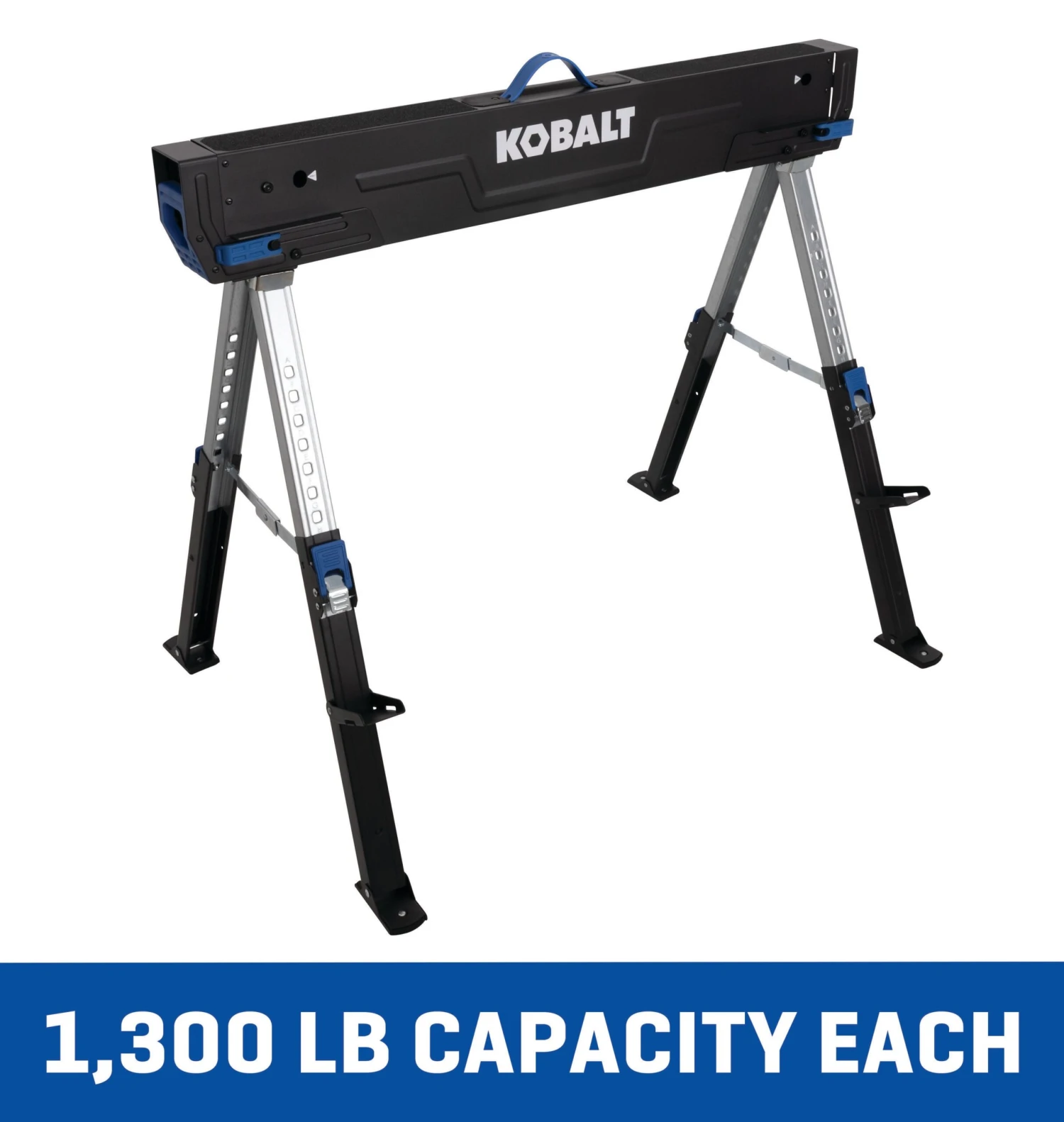 All legs are independently adjustable – from 22-in to 32-in – allowing you to use the sawhorse on uneven surfaces if necessary (not recommended)