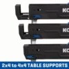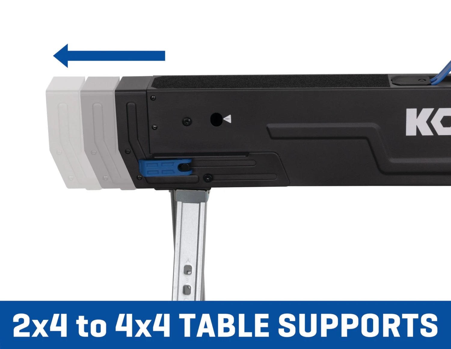 Deep, steel support arms adjust to fit a 2×4 or a 4×4 to assist in creating a flush tabletop when sawhorses are paired, giving you a truly balanced and adequately supported work space