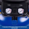 Two gauges provide pressure indicators for both tank and tool to be used