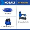 Includes: 6-Gallon Air Compressor, 18 Gauge Brad Nailer and 25’ Air Hose.