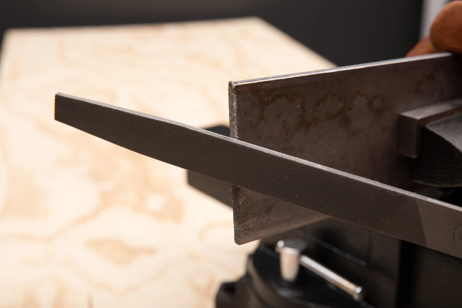 Used for drawing, filing and finishing a metal edge; may also be used to shape hardwoods