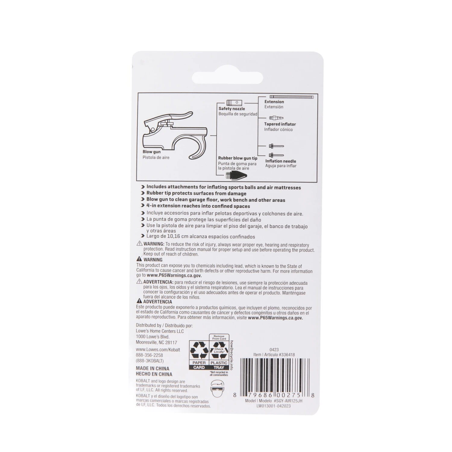 | Package Contents | Standard Blow Gun, Sports ball needle, rubber tip, tapered tip, safety nozzle, extended tip |