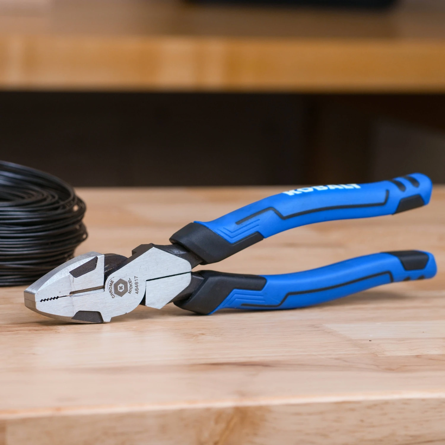 These 9in linesman pliers offer a flat-nose design, for twisting and grabbing wires. The drop-forged chrome nickel steel and hardened jaws give the user clean cuts and a powerful cutting edge.