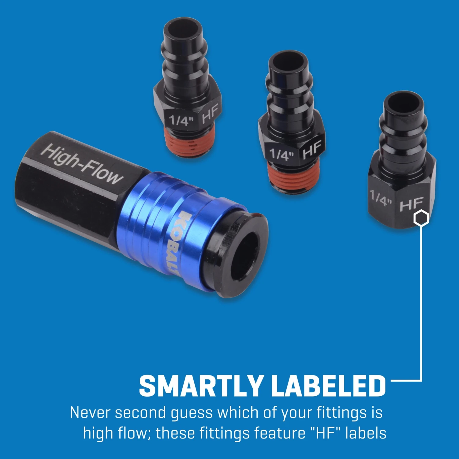 High-flow labels provide clear identification of fittings, helping you maintain optimal air pressure and performance effortlessly