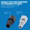 Featuring large-bore fittings that allow for significantly increased airflow, this coupler enhances the efficiency of your air tools and compressor
