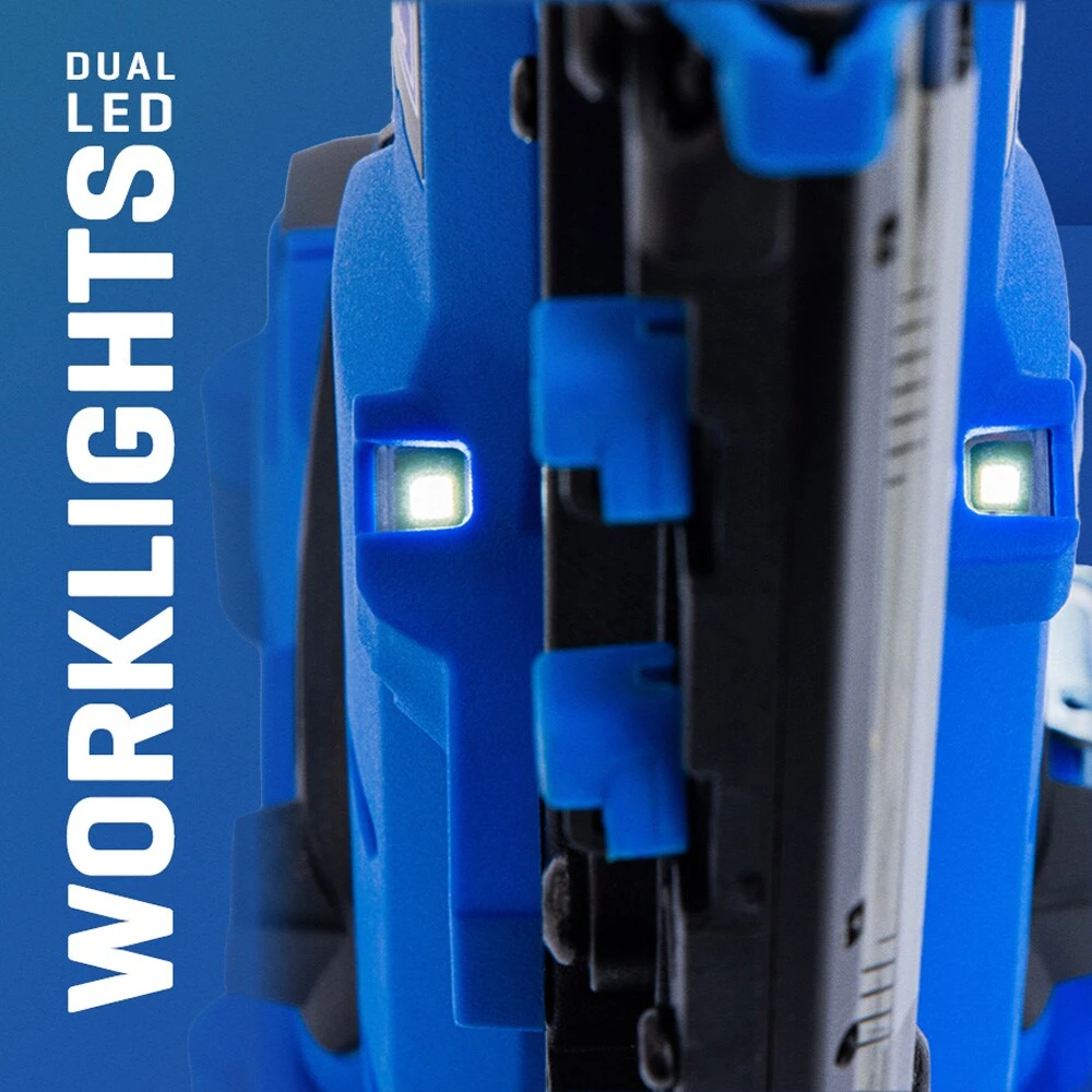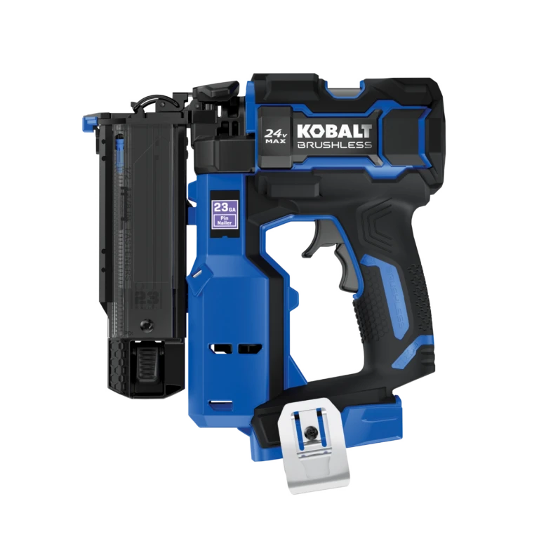 Making any professional or DIY project easier & quicker than ever before…the NEW Kobalt XTR 24Volt BRUSHLESS, 23-gauge Pin Nailer! No more compressors, gas cartridges, or tethering air hoses. Enjoy the cordless freedom of driving up to 2200 nails, at up to three nails per second, on a fully charged 2.0 amp-hour battery (sold separately). This nailer features convenient tool-free depth adjustment, for precise flush driving and an easy-access jam-release feature to save you time. The 130-capacity nail magazine minimizes downtime and transparent magazine window let you know when it’s time to reload. Dual LED work lights illuminate your workspace, reducing shadows and the dual-action trigger switch keeps you safe. Enjoy worry-free, seamless compatibility with all Kobalt 24-volt batteries and chargers (sold separately).